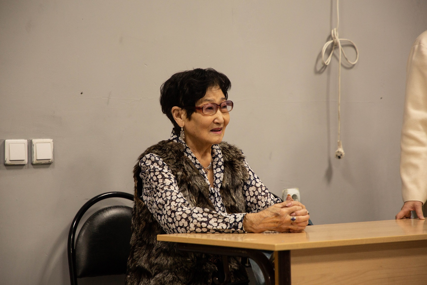 Тамара Егоровна сэрии ыар сылларыгар ааспыт оҕо сааһын, сэрии хонуутугар геройдуу охтубут саллаат аҕатын, колхуостар үлэлэрин, оччотооҕу дьон бэйэ-бэйэлэригэр кыһамньылаах сыһыаннарын, кыайыы кэнниттэн алларыйбыт дойду экэниэмикэтин өрө тардыыга дьон-норуот оҕотуттан-оҕонньоругар диэри туруммутун туһунан сүрдээх истиҥник ахтан-санаан кэпсээтэ. Устудьуоннар ыйытыктарыгар хоруйдаата, кэпсэтии түмүгэр Тамара Егоровна оҕолорго ыйытык биэрэн сөпкө хоруйдаабыкка бэйэтин бэлэҕин туттарда.