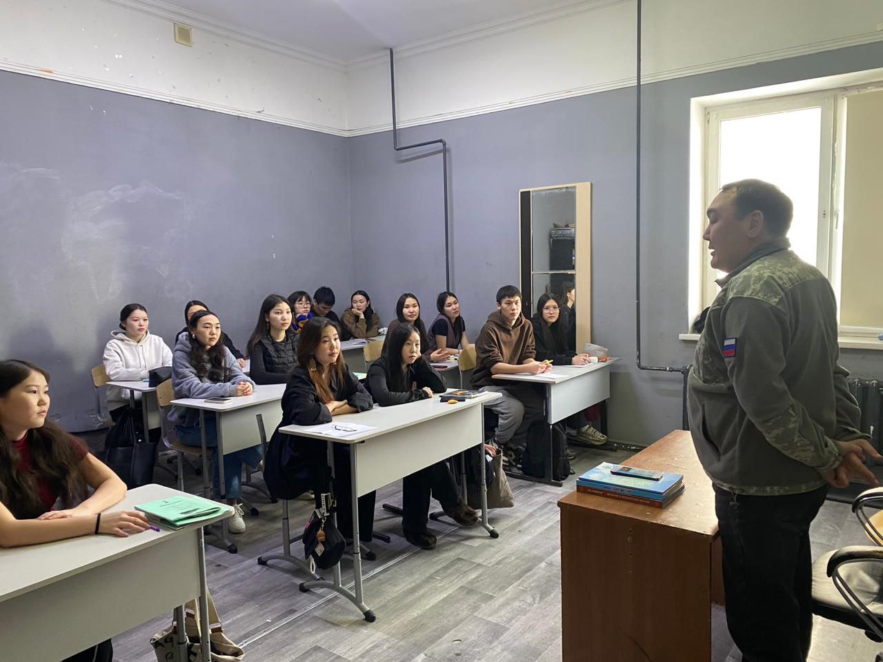 Заместитель руководителя отдела государственного лесного надзора Министерства экологии, природопользования и лесного хозяйства РС(Я) Арыйаан-Дуолан Кузьмин провел профилактическую встречу-лекцию, в ходе которой рассказал студентам ЯККиИ о правилах поведения и пожарной безопасности в лесу.