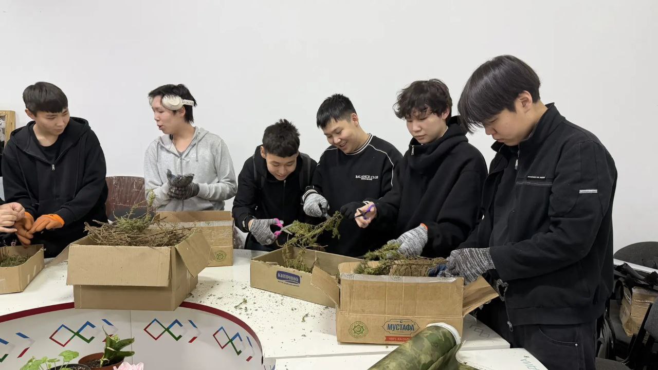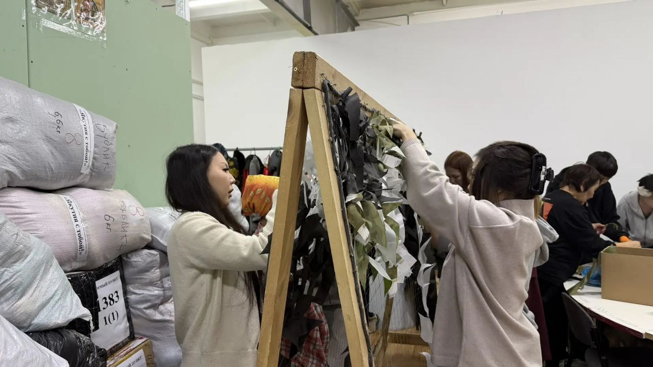 Студенты под руководством преподавателя ПЦК «ФВТ» Арины Бандеровой трудились на плетении маскировочных сетей и формировали маскировочные элементы.