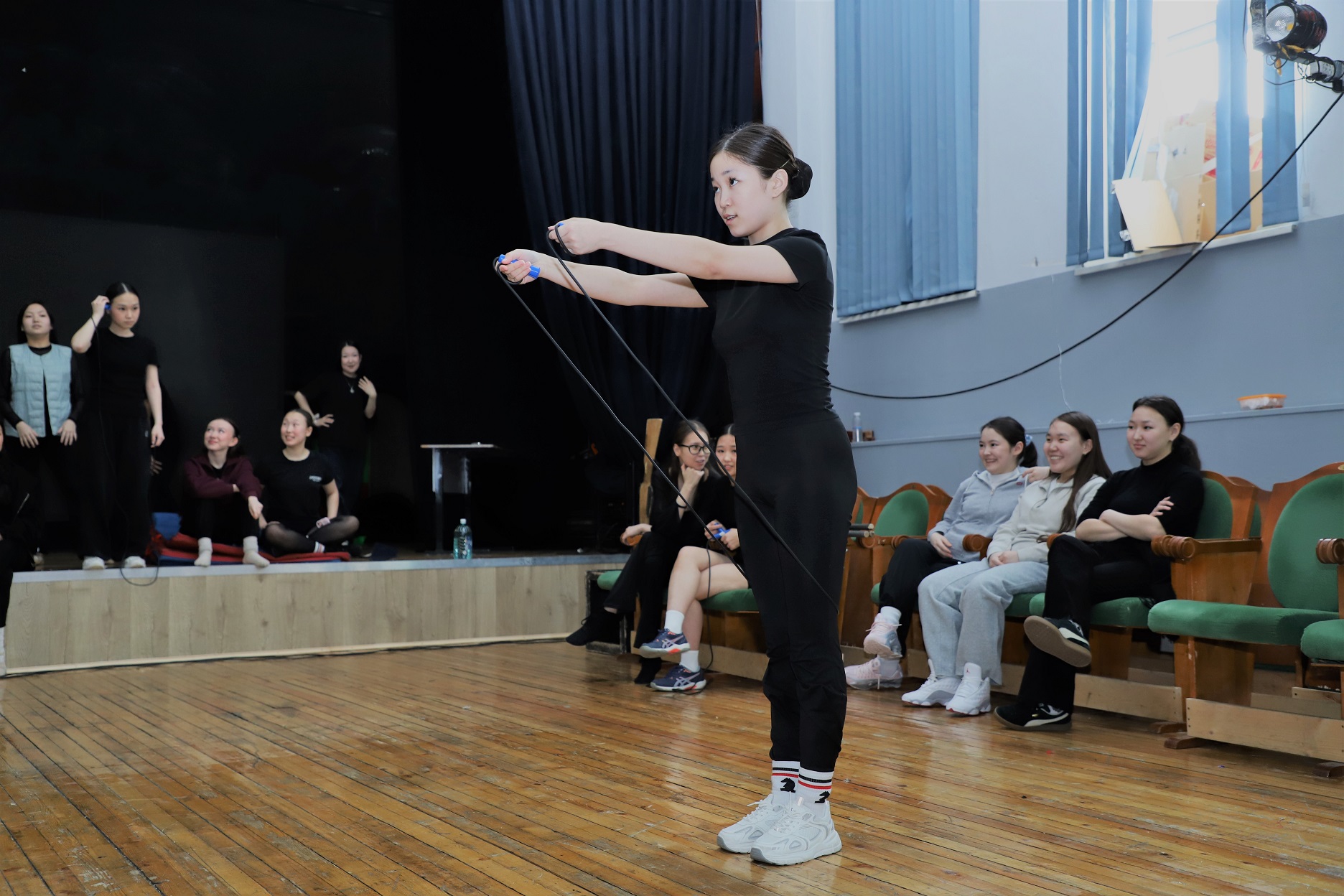 27 февраля 2026 г. претендентки на титул «Kүн Куо» приняли участие в конкурсном этапе «Спорт. Норматив ГТО». Девушкам предстояло сдать пять нормативов: гибкость, прыжки на скакалке, прыжки с места, челночный бег и пресс.