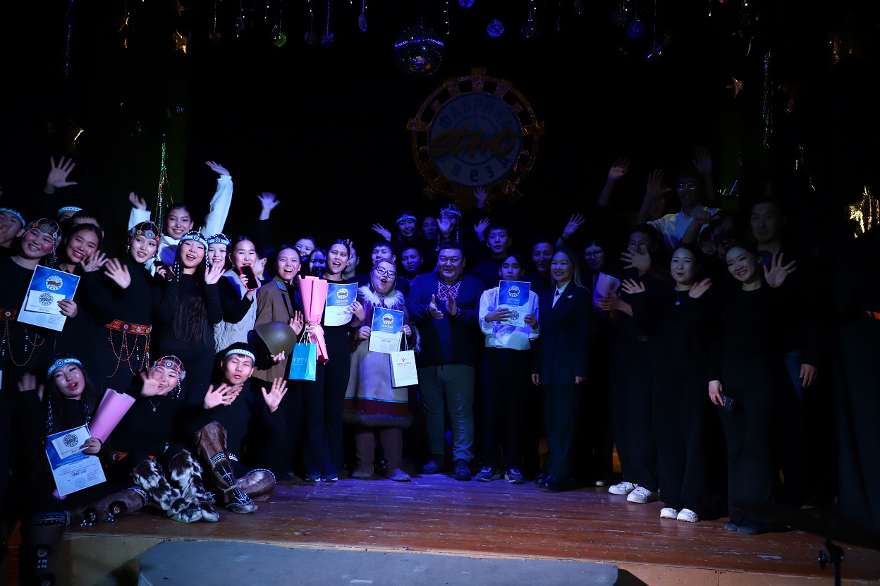 Лауреат I степени – студенты группы «ЭХТ 25» из ансамбля чабыргахсытов «Оргуй-Чоргуй» с чабыр5ах «Сатабыллаах саһыл саҕалаах»;