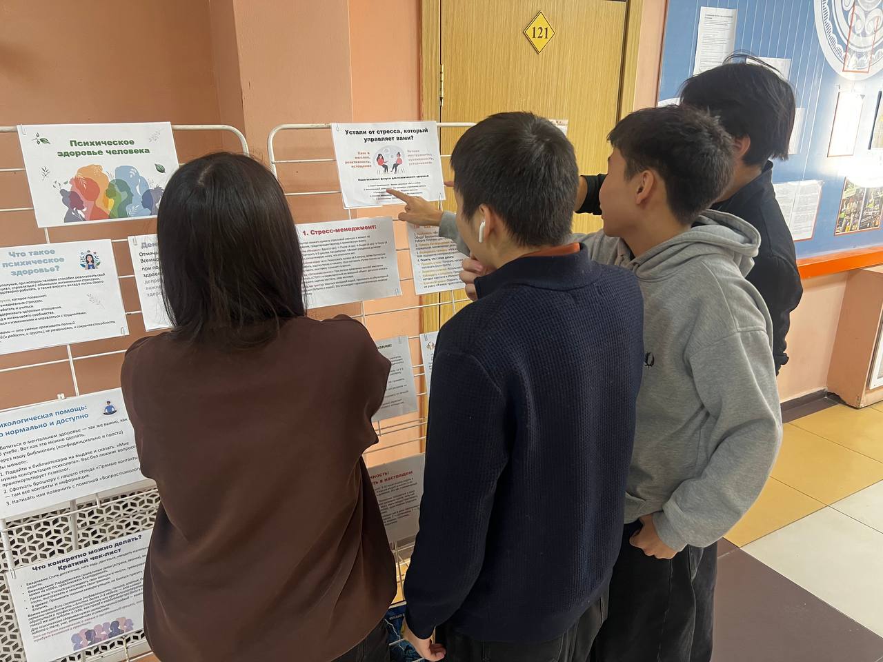 Помимо этого в фойе первого этажа была размещена библиотечная выставка, посвященная психическому здоровью человека. На выставке представлены материалы про стресс-менеджмент, профилактику выгорания и коммуникацию без токсичности.