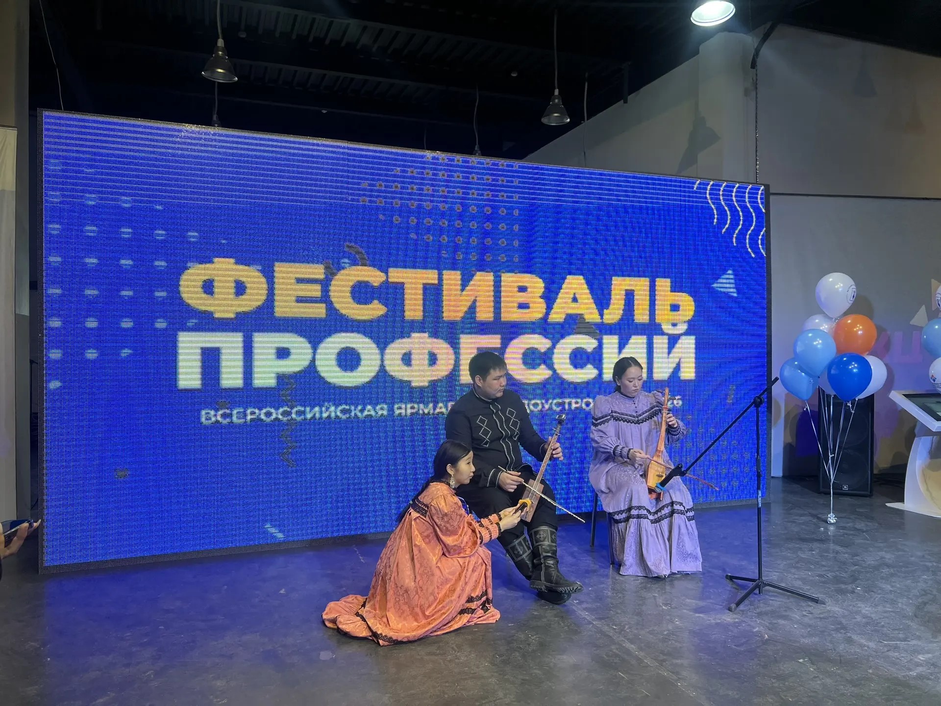 Студенты рассказывали посетителям ярмарки о представленных в ЯККиИ профессиях, учебном и творческом процессе, а также провели мастер-классы для всех желающих по игре на национальных инструментах кырыымпа и хомус.